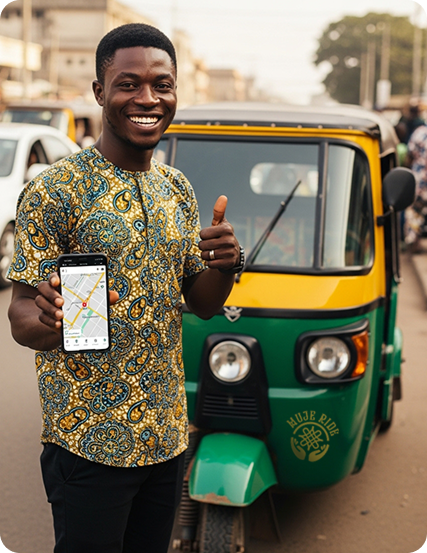 Choose between standard cars or affordable Keke rides.